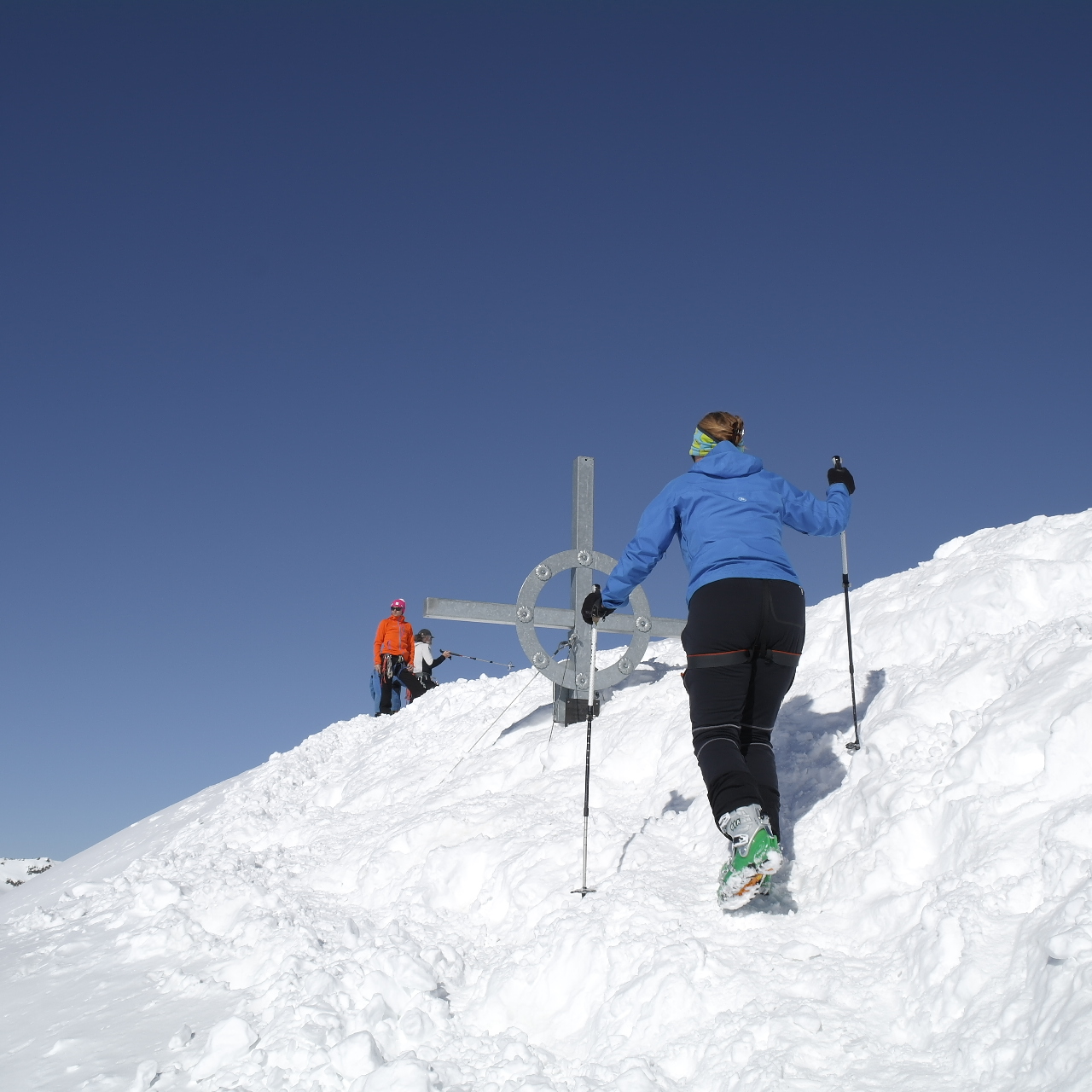 | Strahlend blauer Himmel, kaum Wind und trotzdem stand die Tour unter keinem besonders guten Stern: Ossi hat wegen seiner Verkühlung bereits auf halbem Weg aufgegeben, die Schneeverhältnisse bei der Abfahrt waren auch nicht das was man als „Traumschnee“ bezeichnet. Als Gipfel ist der Rostizkogel allerdings immer eine Tour wert. | ||