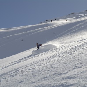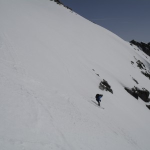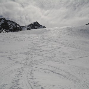 | Der Jochgrubenkopf war eigentlich nur die Notlösung da im unteren Teil von Fischers Napf sehr wenig Schnee lag. Allerdings war uns auch der Jochgrubenkopf nicht wohlgesonnen. Gewaltige Triebschneeablagerungen mahnten zur Umkehr noch ehe wir den Gipfel erreichten. Die Abfahrt war dann allerdings ein echtes Tiefschnee-Zuckerl. | ||