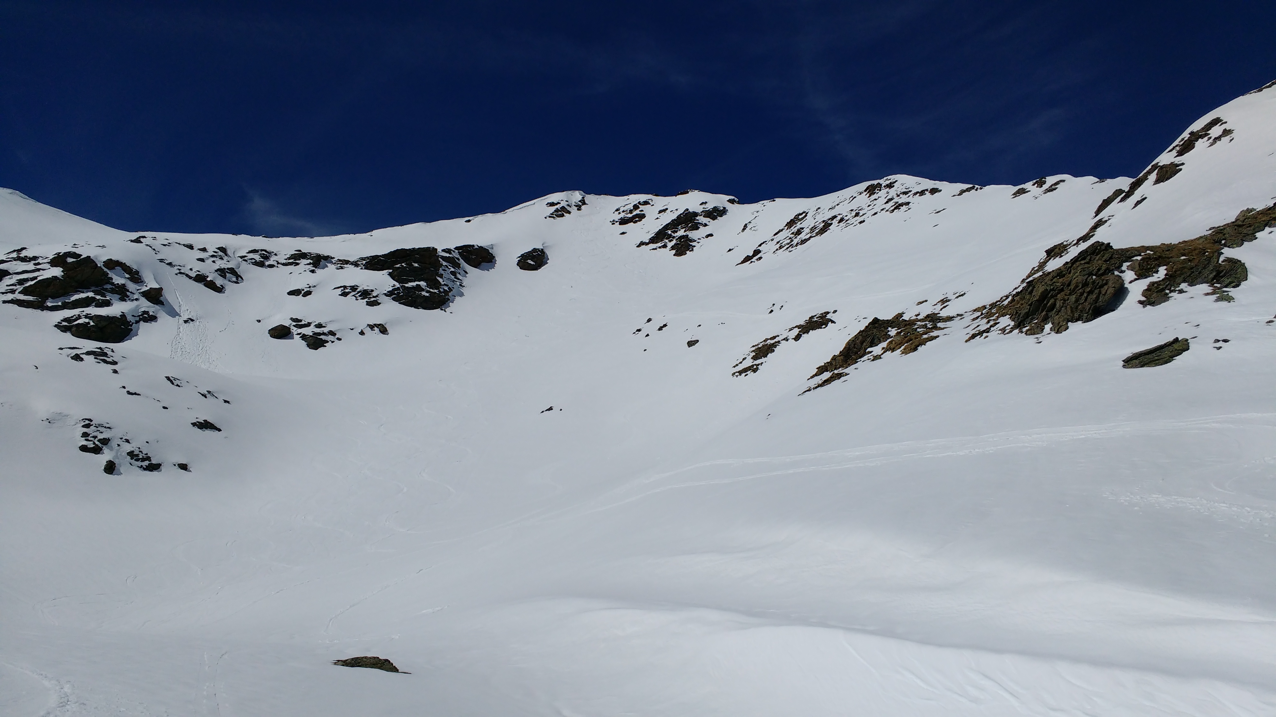 ![]() Ganz zu Unrecht steht der Finstertaler Schartenkopf im Schatten des Sulzkogels. Der mittlere, wenig interessante Teil des Anstieges, dem Finstertaler Stausse entlang, ist mit jenem zum Sulzkogel identisch. Am südlichen Ende des Sees trennen sich die Routen jedoch. Ganz alleine waren wir auch auf unserer Tour nicht, allerdings waren die Menschenmassen nicht annähernd so groß wie zum Sulzkogel. Das größtenteils ansprechend steile Gelände versprach bereits beim Aufstieg eine wunderbare Abfahrt. Nach einer erholsamen Gipfelpause konnten wir direkt am Gipfel die Skier anziehen und durch eine steile, rinnenartige Mulde unsere ersten Schwünge ziehen. Der Rest war beinahe ein Traum in weiß. Makellose firnige Hänge ……… |